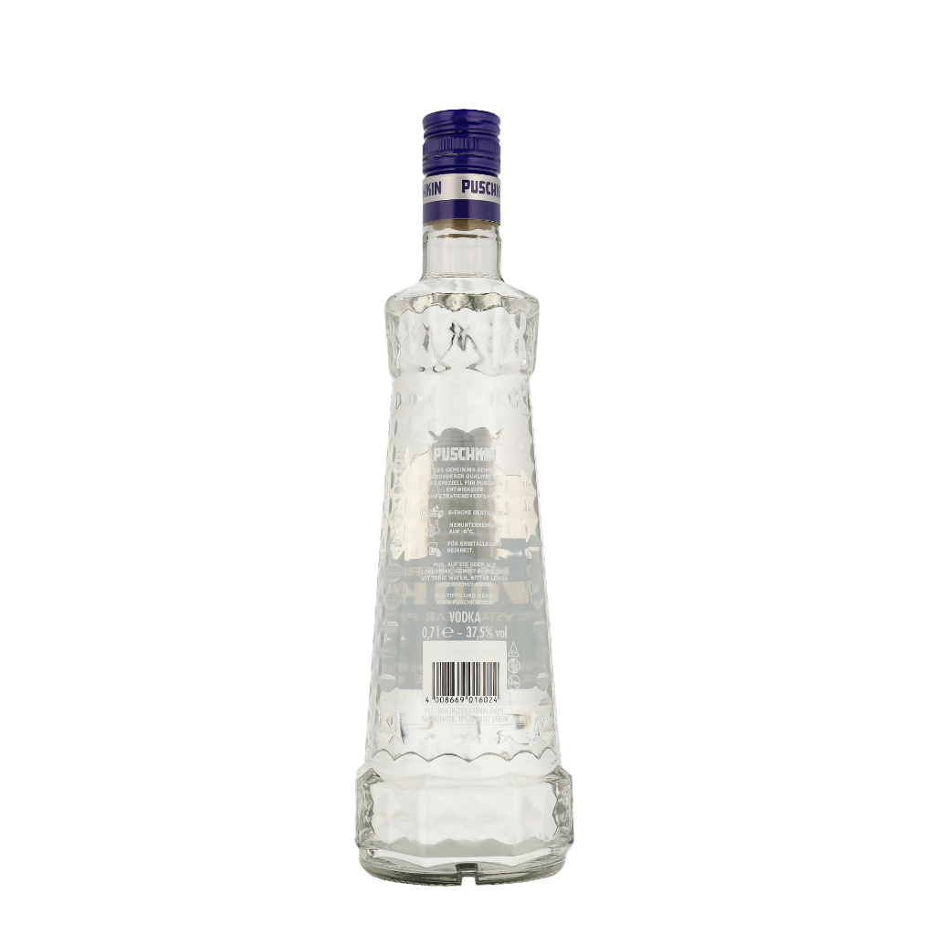 Puschkin Vodka - 0.7 liter is een symbool van verfijning en vakmanschap, gemaakt volgens een eeuwenoud recept dat tot in perfectie is geperfectioneerd. Een ware traktatie voor de zintuigen. De subtiele balans tussen zoete en kruidige tonen maakt deze drank zowel toegankelijk als diepgaand. De productie gebeurt met de grootste zorg, waarbij elke fase van het proces nauwlettend wordt gecontroleerd. Of je nu een doorgewinterde kenner bent of een nieuwe liefhebber, Puschkin Vodka - 0.7 liter biedt een ervaring die blijft verrassen en inspireren.