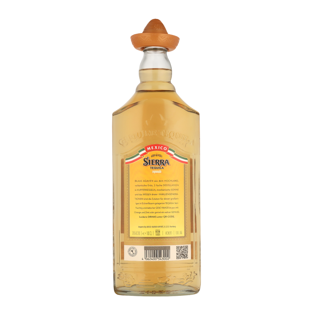 De distillatie van Sierra Reposado - 1.0 liter is een proces van precisie en vakmanschap, waarbij alleen de beste natuurlijke ingrediënten worden gebruikt. Het resultaat is een harmonieuze drank met een unieke en authentieke smaak. De botanicals worden met de hand geselecteerd en in kleine batches verwerkt om een optimale kwaliteit te waarborgen. Het langzame distillatieproces zorgt ervoor dat alle smaken volledig tot hun recht komen en een diepe, verfijnde beleving creëren. Sierra Reposado - 1.0 liter is ideaal voor wie op zoek is naar een premium ervaring en een drankje met karakter en finesse.